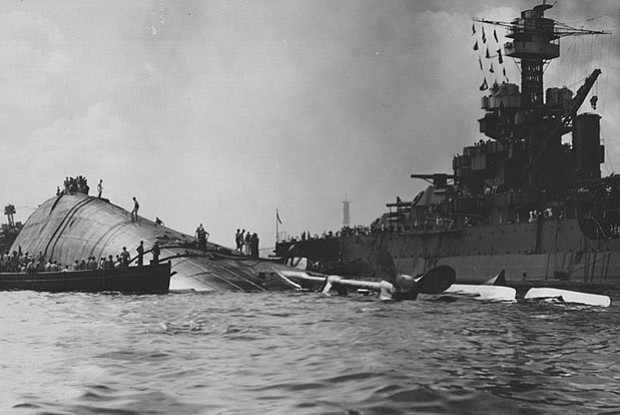 By December 7, 1941, dad had already served over 10 years in the Navy. He was almost 30 years old when the bombs began to fall that morning. Born in Chicago, orphaned as a child, he had to make his way in the world with an 8th grade education. The Navy must have seemed like a good career opportunity. His first ship was the USS Oklahoma where he started as a Seaman 2nd class in 1932 and left in 1938 as a Fire Controlman 3rd class. Three years after my dad left, the Oklahoma was hit by Japanese torpedoes at Pearl. The ship capsized. 429 men were killed. I wonder if my dad knew any of those men. The USS Oklahoma would never sail again – her parts were later salvaged.